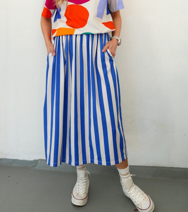 Spódnica – NIEBIESKO-KREMOWE PASKI